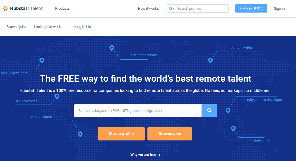 Hubstaff Talent is a recently launched talent-hiring service. It is a great alternative to Unicorn.Dev as it’s free to use-they don’t charge additional fees on developer rates. Clients can also post jobs free of charge.
