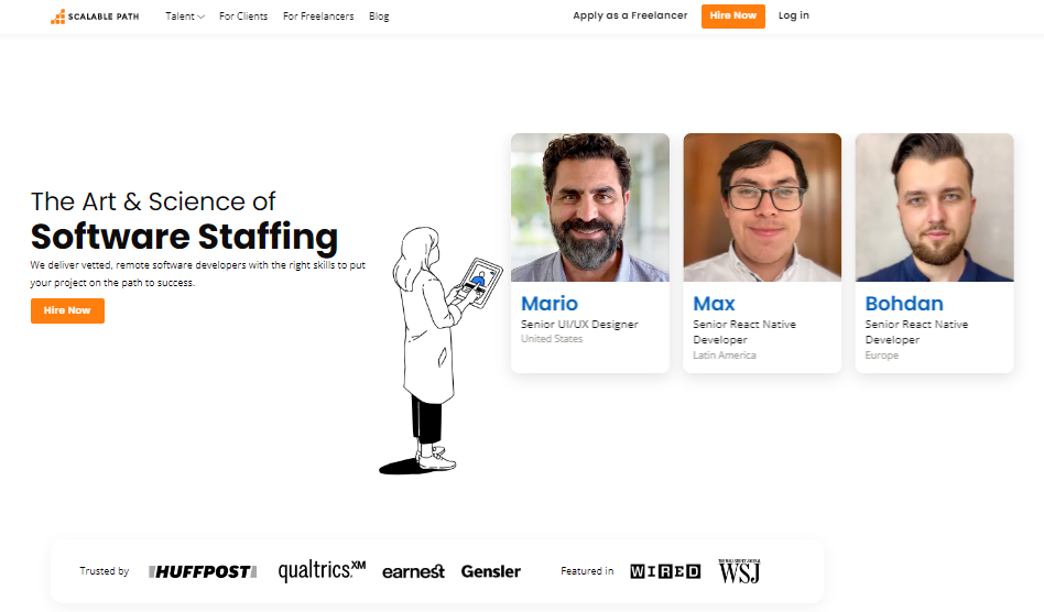 Scalable Path is another tech staffing agency that has over 28,000 experienced freelance software developers from around 180 countries.
