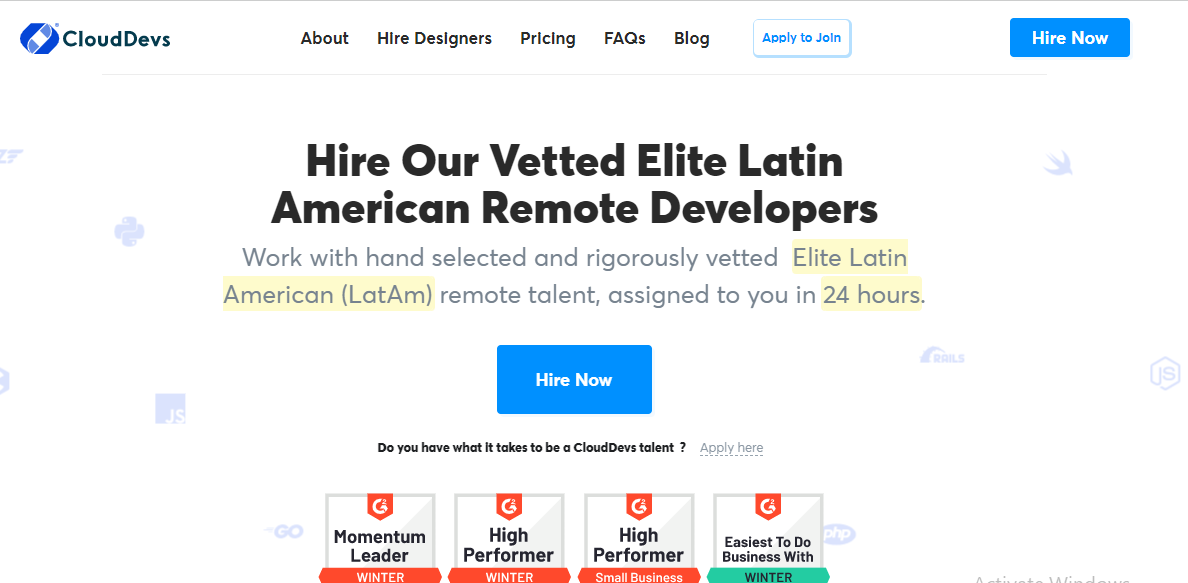 CloudDevs is a talent hub that offers pre-screened Latin American developers for hire. Their tech talent is carefully matched with the client's requirements, and the recruitment process is usually completed within 5 days.