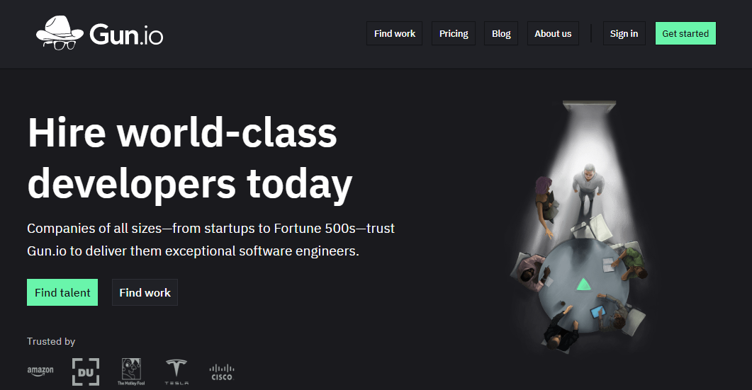 Gun.io is a competitor that helps startups recruit software developers. These developers are part of Gun’s tech talent community, which is strictly by invitation. Gun.io uses a custom recommendation process to match these devs with suitable companies.