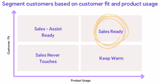 💡 Pro tip: Map out a chart of Customer Fit vs Product Usage like the one below to easily identify which PQLs are sales-ready 👇🏼