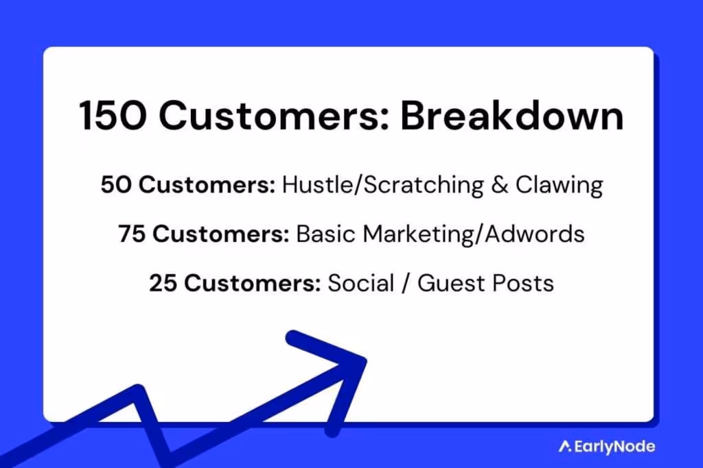 You can probably hustle up your first 150 customers even while you have a day job by scratching and clawing and using basic marketing channels like SEO, AdWords, and social media.