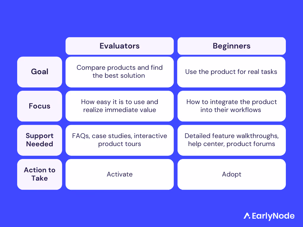 Beginners also start to integrate your product into their workflows, which is exactly what you want. But they're not quite ready for complex use cases yet. So, take it slow, let them enjoy the honeymoon phase, and make sure they get comfortable with the basics!