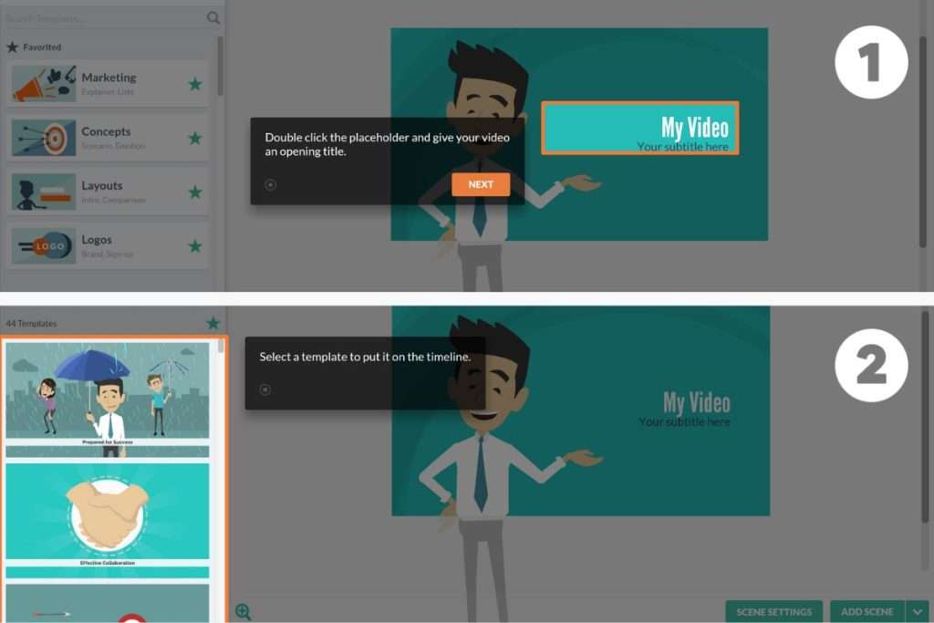 Interactive walkthroughs let users interact with your app as they’re guided step-by-step through how to use a feature. In other words, they learn by doing. You can create a walkthrough using tooltips or videos. Take a look at how GoAnimate uses tooltips to show users how easy it is to make a video: