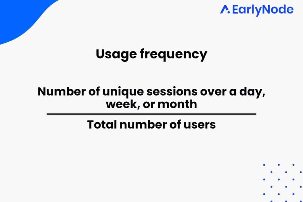 To calculate usage frequency, choose a time period and count how many times a user logs in and uses your product. To get an average, you can use this simple formula: