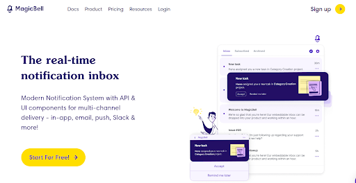 MagicBell prides itself as a platform that provides real-time, seamless multi-channel messaging for B2B and B2C companies.