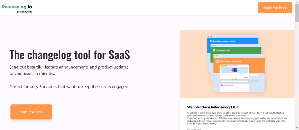Releaselog allows you to create, edit, and publish beautiful release notes in minutes. It’s designed for busy SaaS founders and product managers who want to keep users engaged about the progress of their products. You can embed the changelog widget into your app so that users get notified while active in your product.