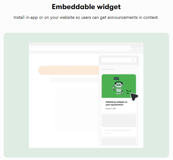 In-app popup messages or in-app changelog widgets appear while the user is in the app. They’re the most effective way of announcing SaaS product updates. There are more than 5 types of in-app messaging widgets. Below are 2 common examples.