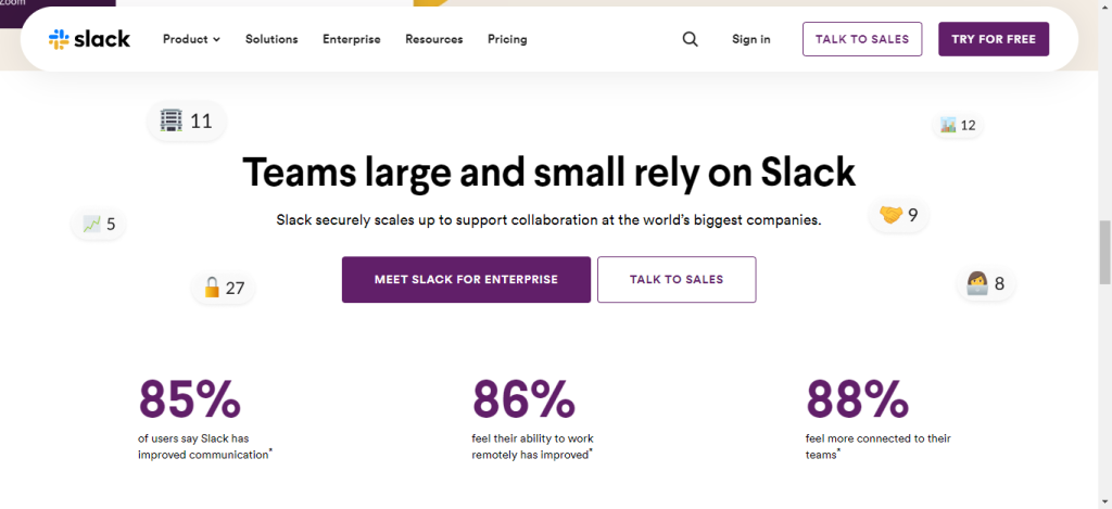 Another thing that stands out is their use of data. They displayed figures showing the percentage of businesses that have improved their productivity since using Slack. This strengthens their credibility with potential customers.