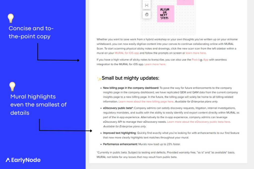 Mural goes one step further. While keeping their release notes quick and concise, they give users some extra bits of information.