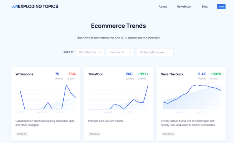 Exploding Topics is a trend analysis tool that tracks millions of online searches, conversations, and mentions. You can use it to identify trending topics relevant to your product.