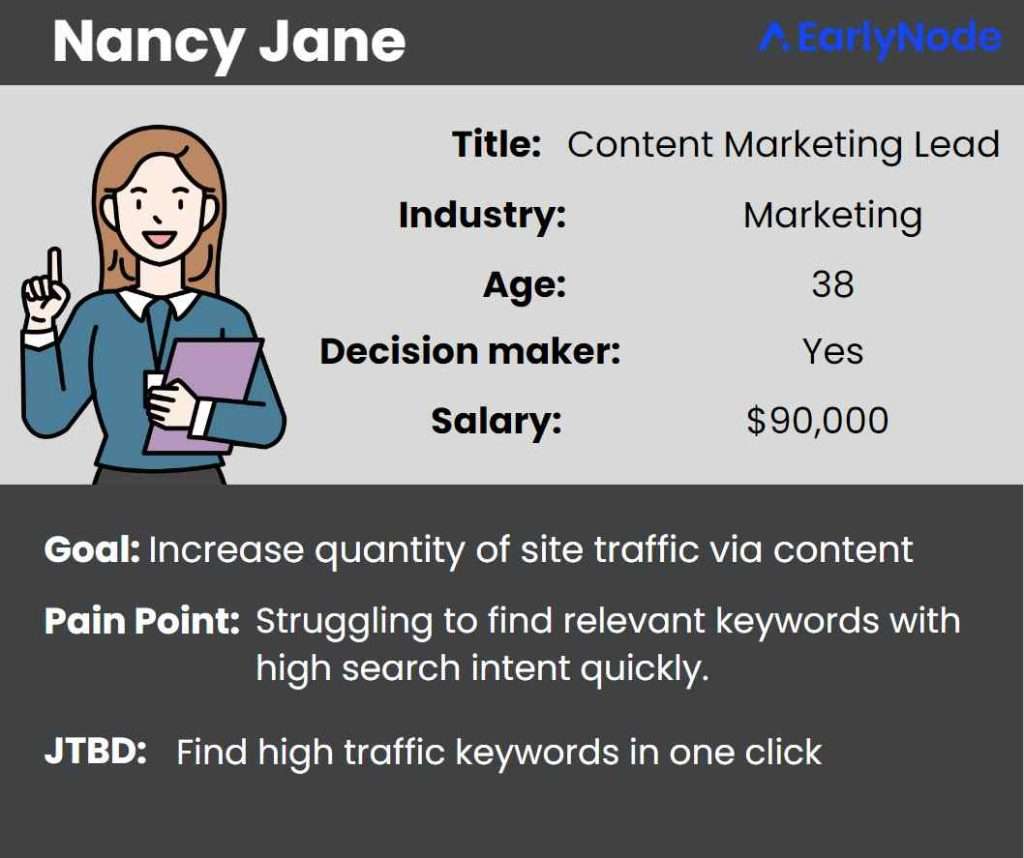 - The JTBD (jobs-to-be-done) i.e. the task your customer wants to achieve