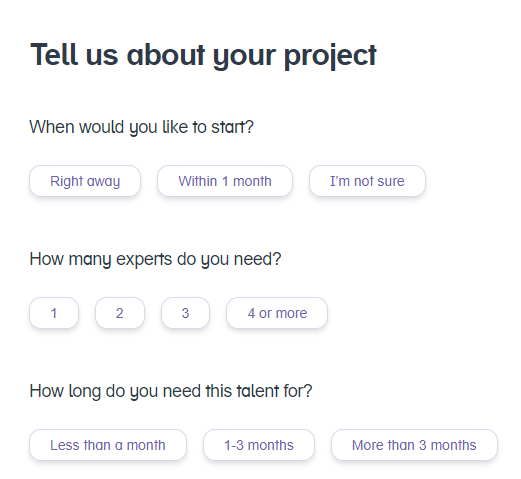 - Hire fast. You can get started on a project with a developer in less than 7 days.
