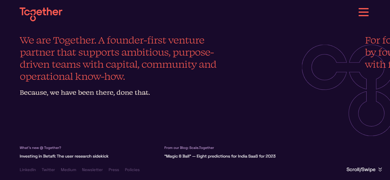 Together Fund, based in Bengaluru, India, is an early-stage venture capital firm that recently announced the first close of its second fund, targeting a total corpus of $150 million. The fund aims to support SaaS startups and will start deploying capital in 2024. Together Fund was established by notable founders, including Girish Mathrubootham of Freshworks and Manav Garg of Eka Software, and raised its first fund in July 2021 with a corpus of $85 million.