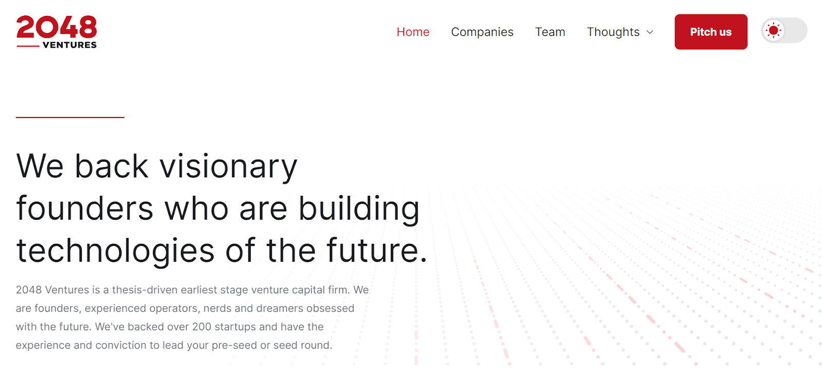 2048 Ventures identifies itself as a “firm for founders, experienced operators, nerds, and dreamers” and is particularly interested in supporting pre-seed or seed-stage startups. They have a notable track record, having backed over 200 startups, demonstrating their experience and conviction in leading early-stage investment rounds. The firm operates mainly in the United States and Canada and is known for its focus on investing in exceptional first-time entrepreneurs with a strong vision, a mission-driven team, and founder-market fit.